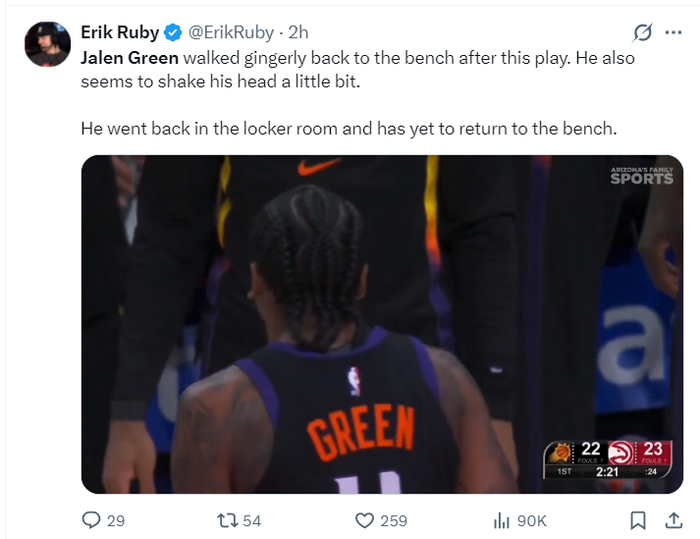北京时间1月24日,菲尼克斯太阳103-110惜败亚特兰大老鹰,这场比赛对于太阳来说非常惨烈,输球或许是最不值一提的,因为杰伦-格林、德文-布克两个核心后卫接连伤退,而且不知道他们何时能复出。